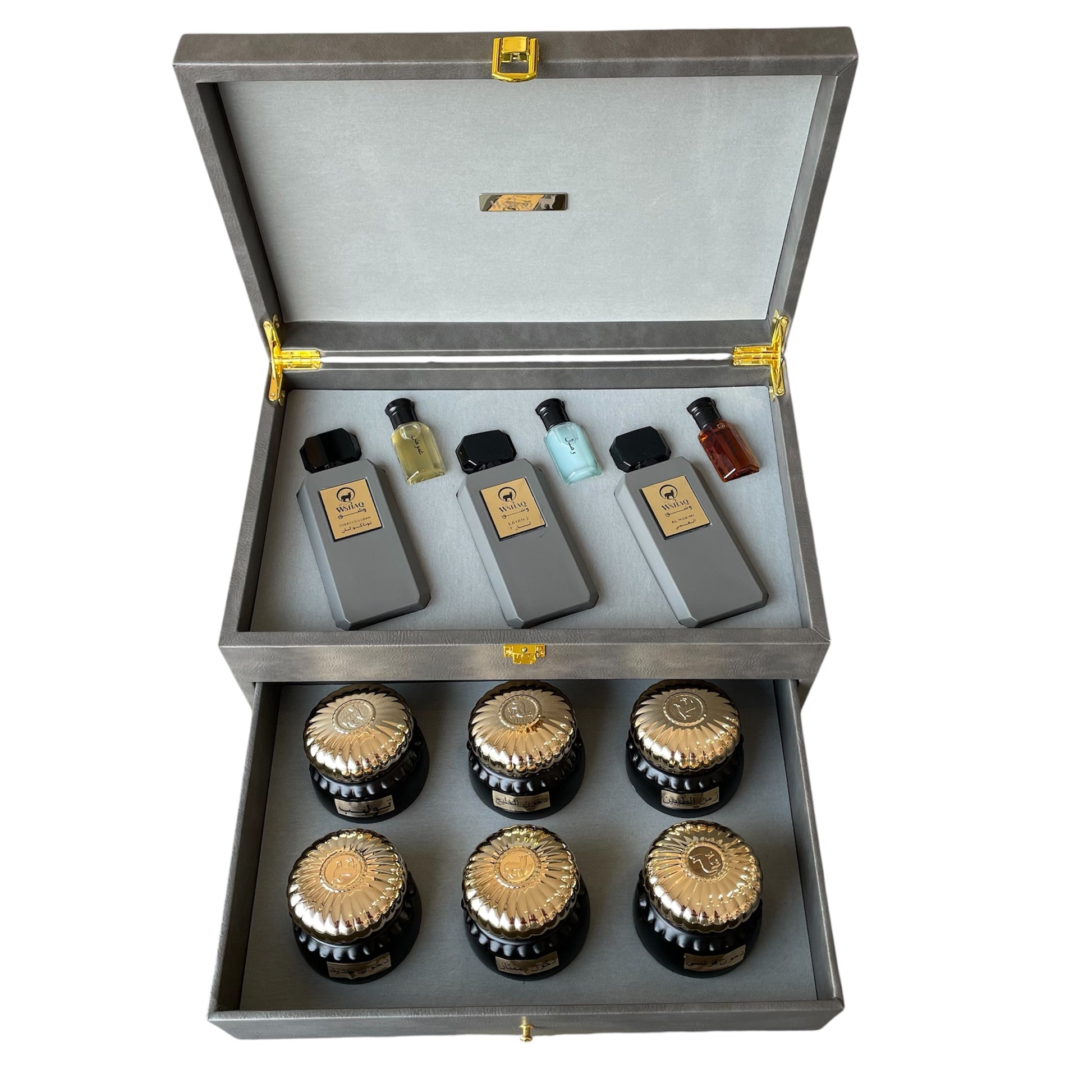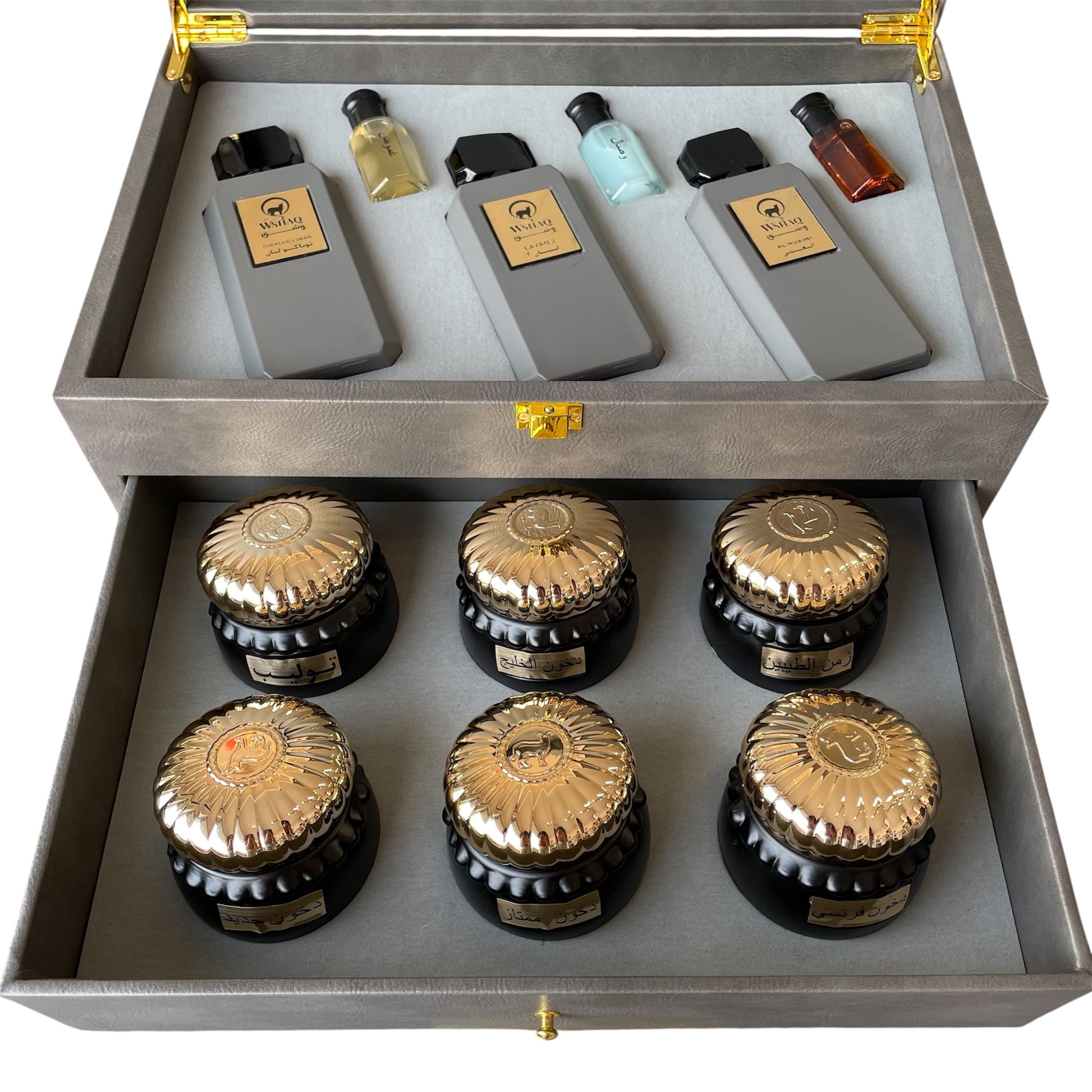 يتكون من 3عطور 75 ملي + 3 تولات 12 ملي + 6 بخور